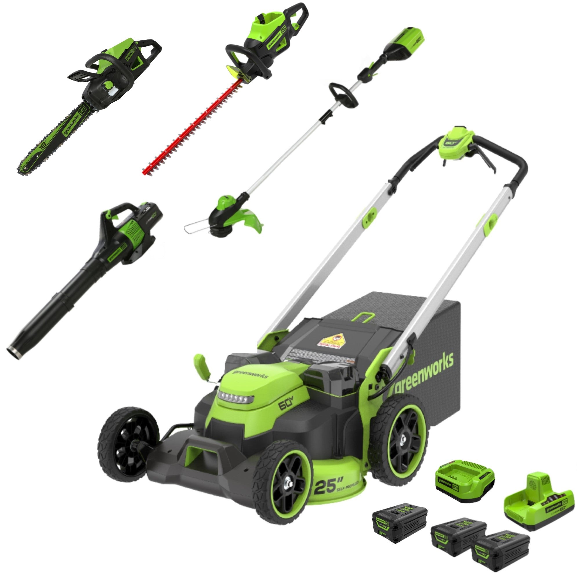 The Greenworks 60V platform powers over 75+ indoor & outdoor products, including lawn mowers, blowers, string trimmers, chainsaws, power tools and more! Greenworks 60V battery provides more power and more run-time, and delivers fade-free power with no memory loss after charging. The Greenworks 60V platform comes with a 4 Year Limited Tool & Battery Warranty to protect your investment.