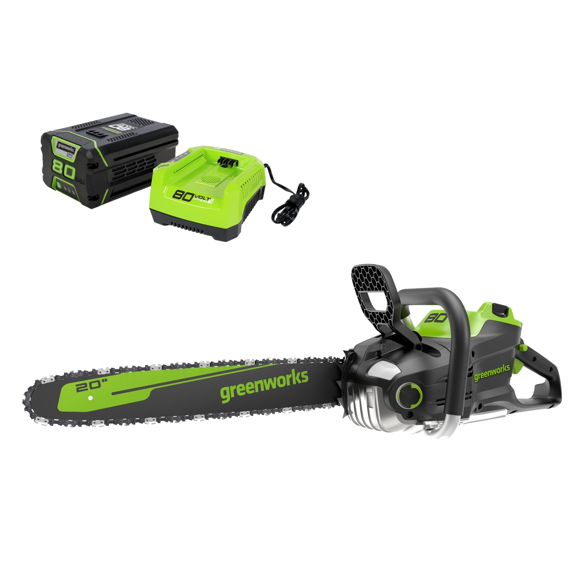 - Included 80V Battery power 75+ Greenworks 80V tools