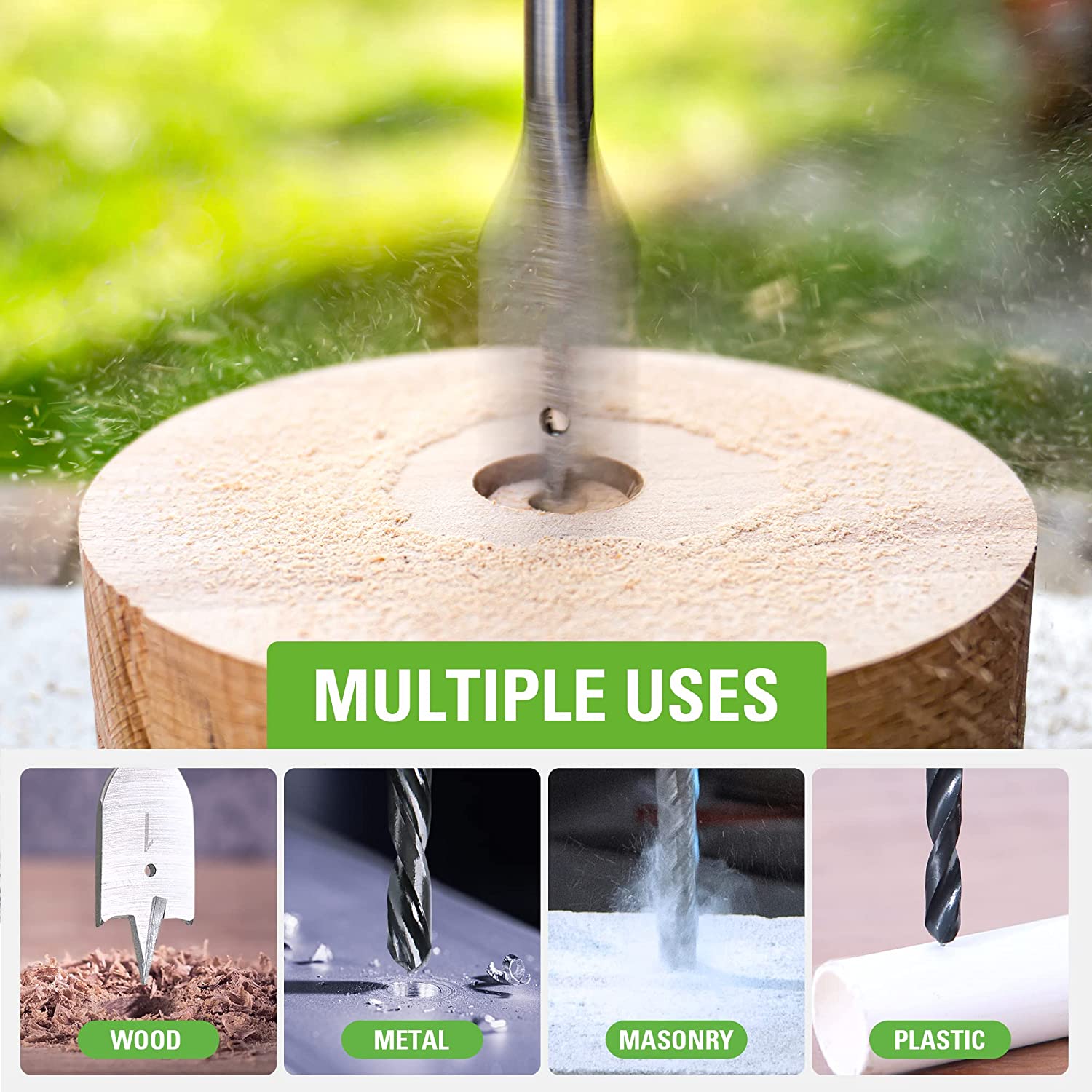 • Multiple Uses in Material - Metal, Wood, and Plastic.