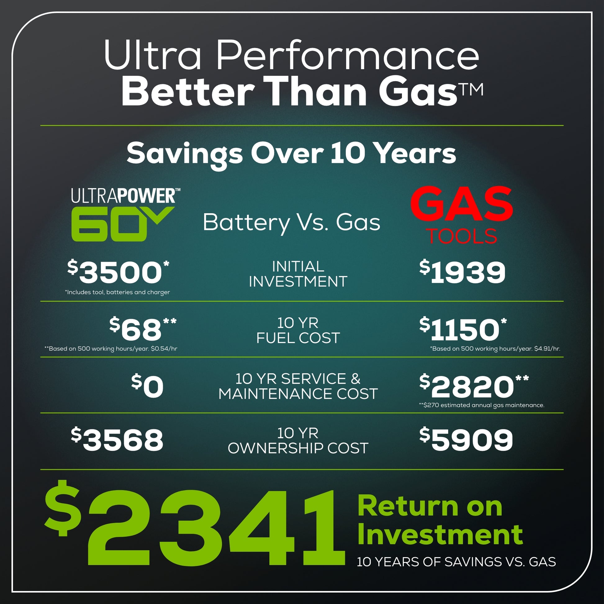 • Included batteries powers over 75 Greenworks 60-Volt tools.