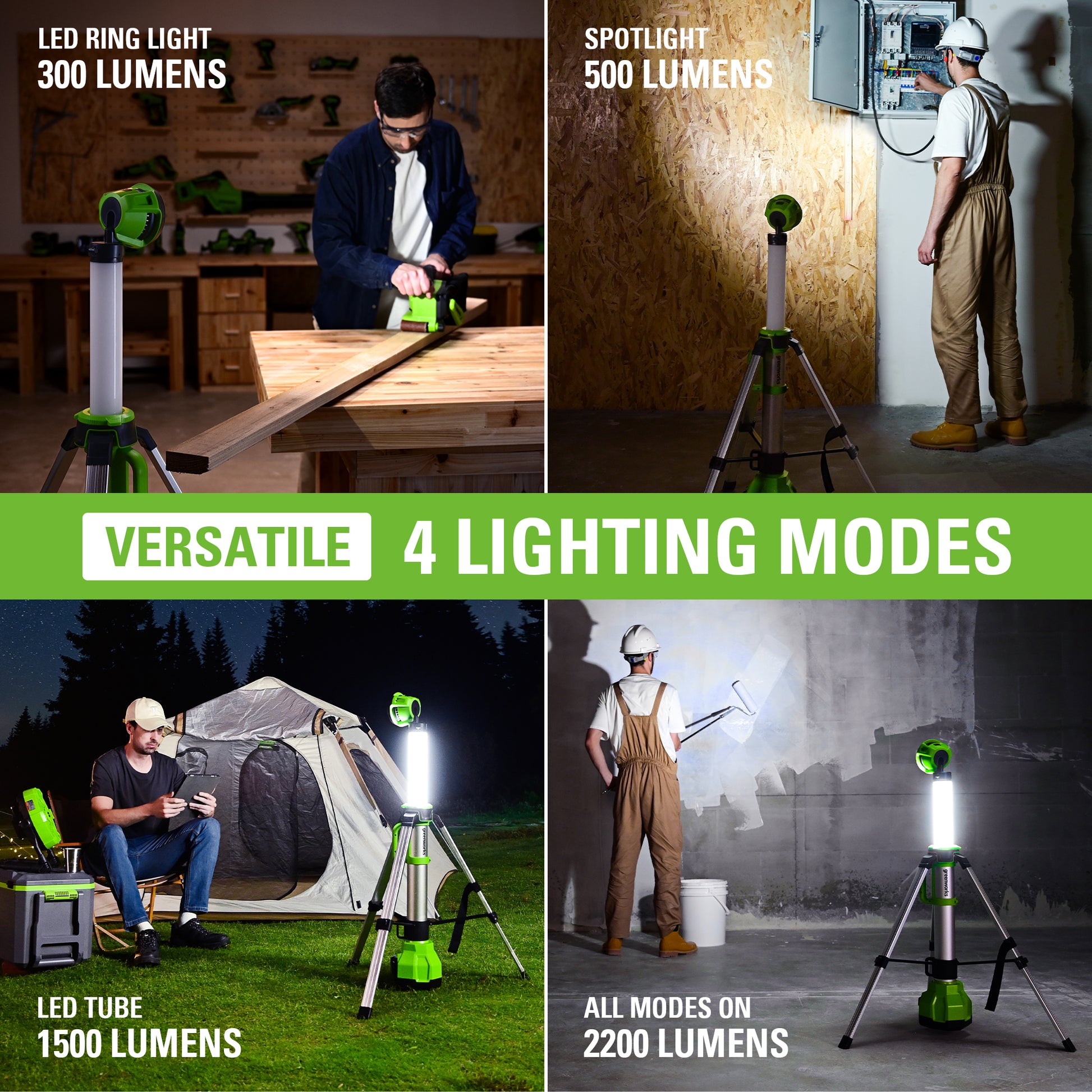 24V Cordless Battery 2-in-1 Standing Light Kit w/ 2.0Ah Battery & Charger