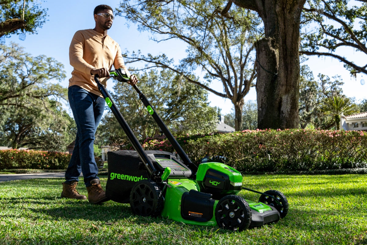 Can my GreenWorks mower cut up pine cones, branches, twigs and other yard debris laying on my lawn?