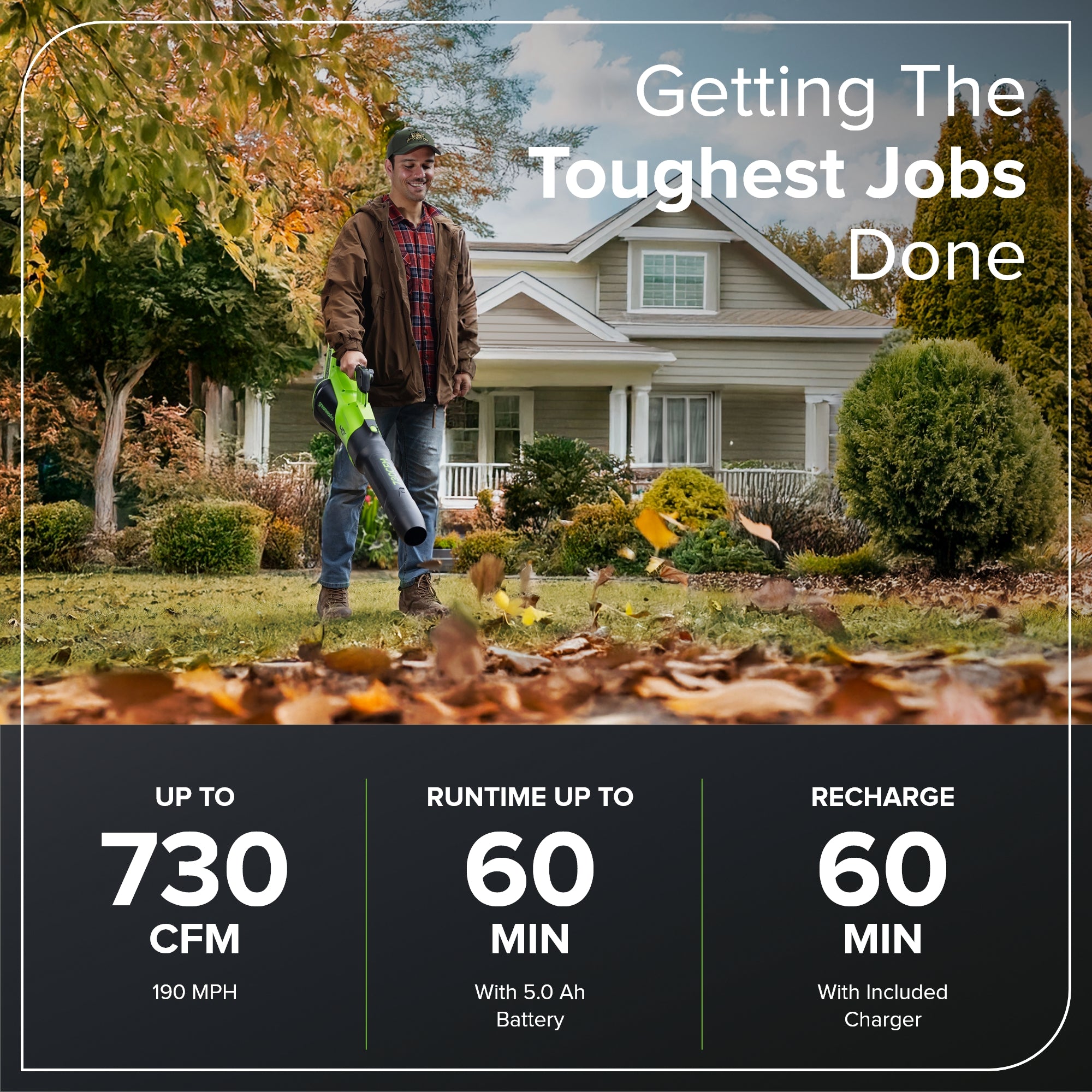 40V 730 CFM Cordless Battery Leaf Blower w/ 5.0Ah Battery & 5A Charger