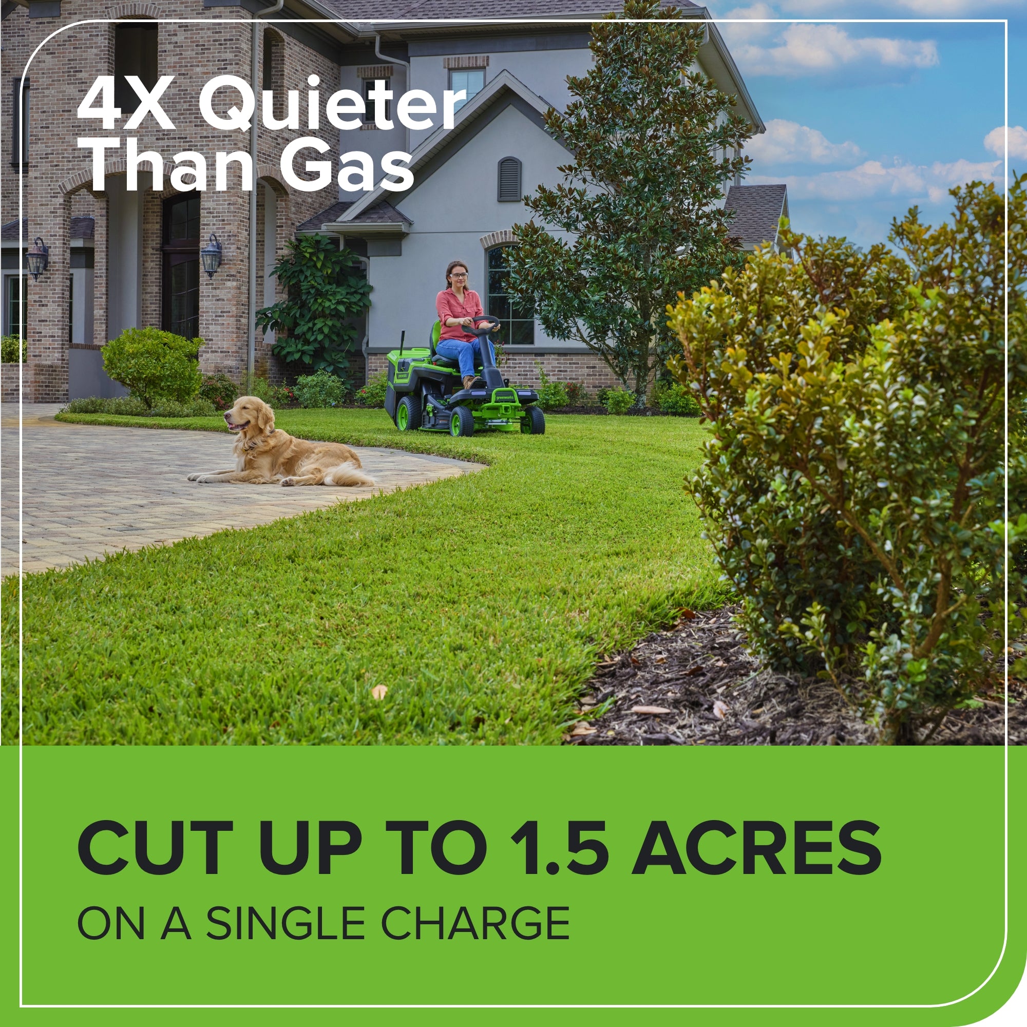 • Gone are the days of paying for gas and maintenance - save over $2,300 in just 10 years. Included batteries powers over 75 Greenworks 60-Volt tools.