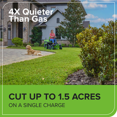 Introducing the 30" CrossoverT Tractor: Harness the power of innovation with our 16HP equivalent motor, delivering 50% more power than traditional gas mowers. With a speedy cutting rate of 4.5 MPH, you'll breeze through your lawn care tasks in no time. Our advanced battery technology enables you to cover up to 1.5 acres on a single charge, while the 30" deck ensures efficient coverage. Say goodbye to the limitations of gas-powered mowers and embrace the future of lawn care with our high-performance, eco-friendly solution.