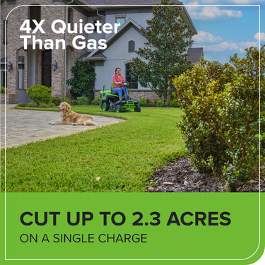 Powered by intelligent brushless motors, this tractor offers unmatched durability and consistent power. The 30-inch 13-gauge steel deck and 4.5 MPH cutting speed handle tough grass with precision, while the single-lever 7-position height adjustment (1.5"-4.5") and front/rear attachment capability provide customizable performance for any lawn care need. Built to outperform gas mowers, it’s the ultimate blend of strength, speed, and adaptability.