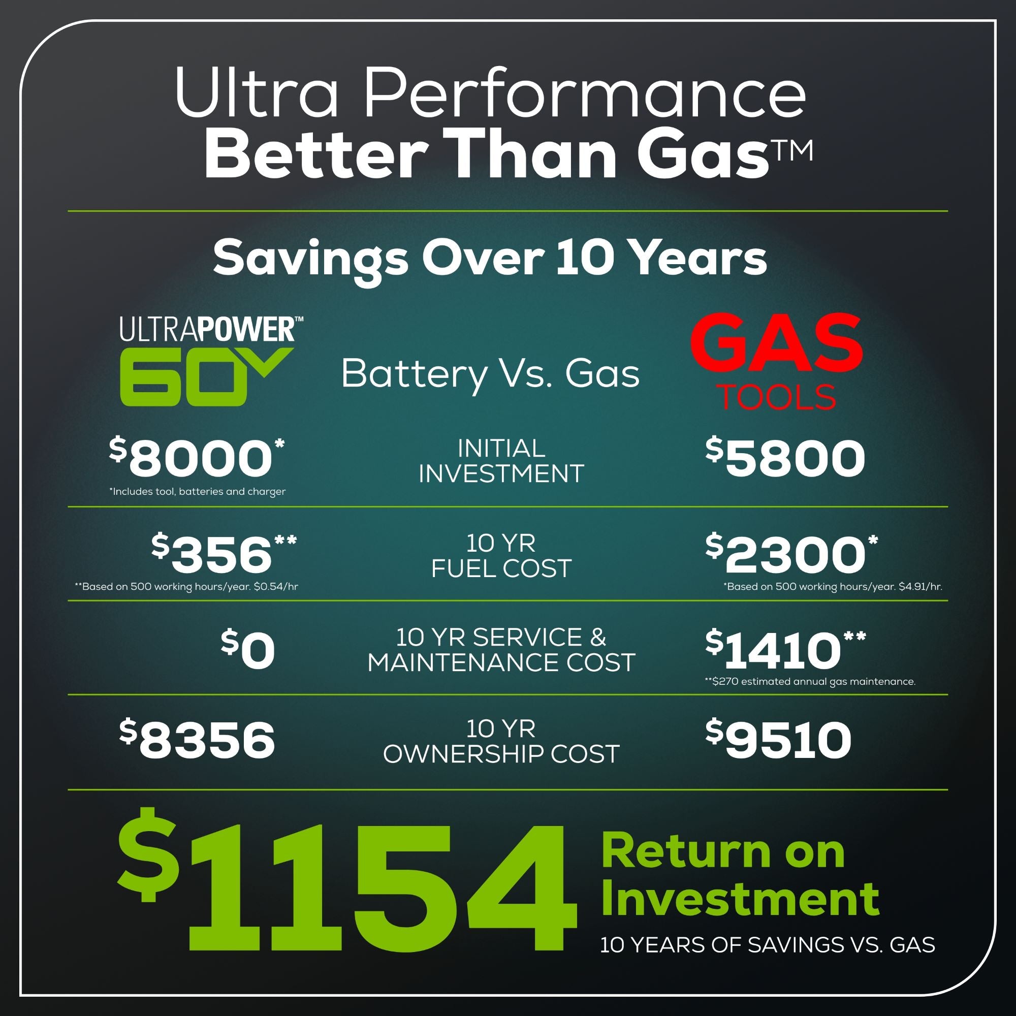 - 31 HP gas-powered engine equivalent with intelligent brushless motor technology vs gas-powered competitors