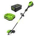 The powerful Greenworks Pro 60V UltraPower™ cordless battery platform gives you all the power you need to tackle all your lawn care projects. With the Greenworks Pro 60V 8" Brushless Edger, users can edge with ease with a guided wheel and steel 8" blade. Kick gas to the curb this spring and go green with no fumes, no mixing, no maintenance and no pull cords. Let Greenworks help you take the work out of yard work. When you're done, the 60V battery charges in just 50 minutes so you are always ready to power over 75 Greenworks tools. Life. Powered By Greenworks.