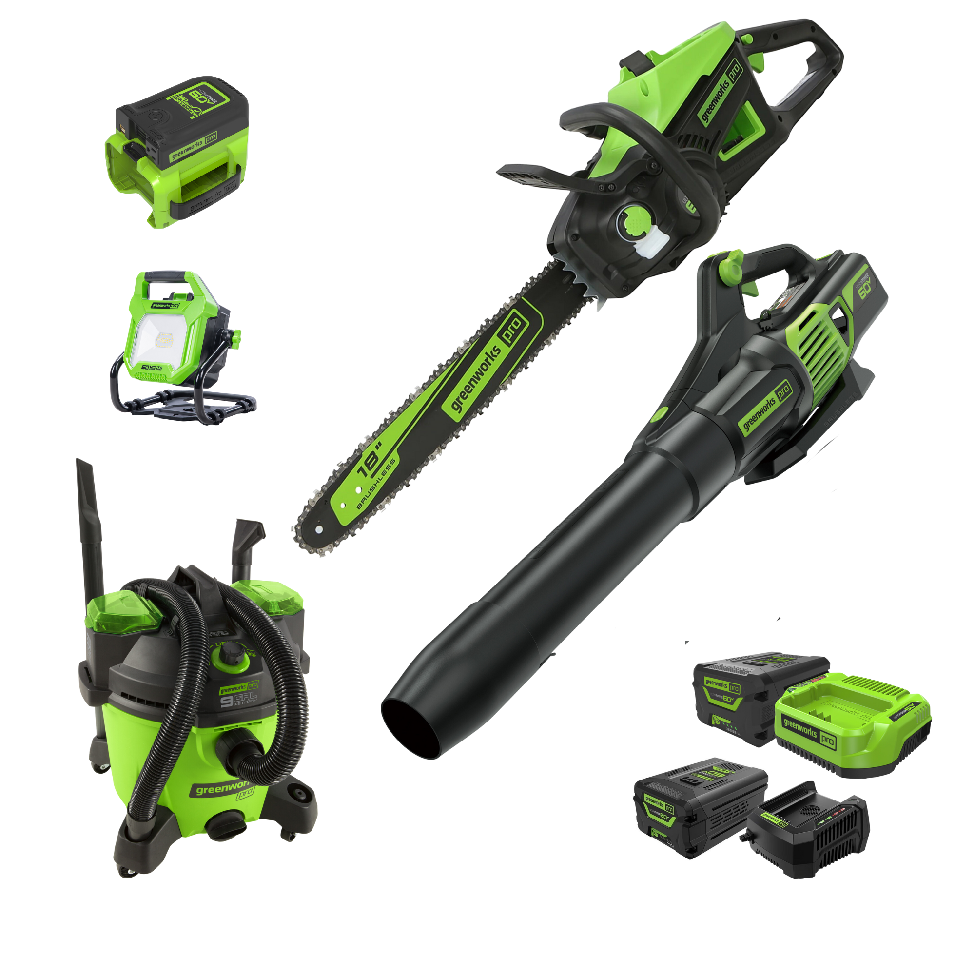 - Compatible with all Greenworks Pro 60V batteries (battery sold separately)
