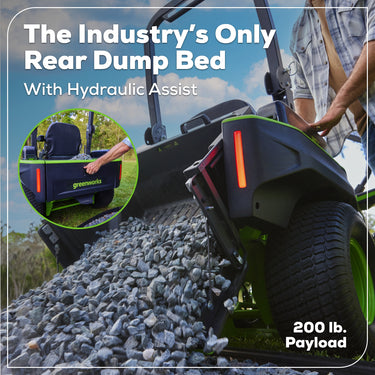 • Haul up to 200lbs and unload with ease with the industry's only rear dump bed