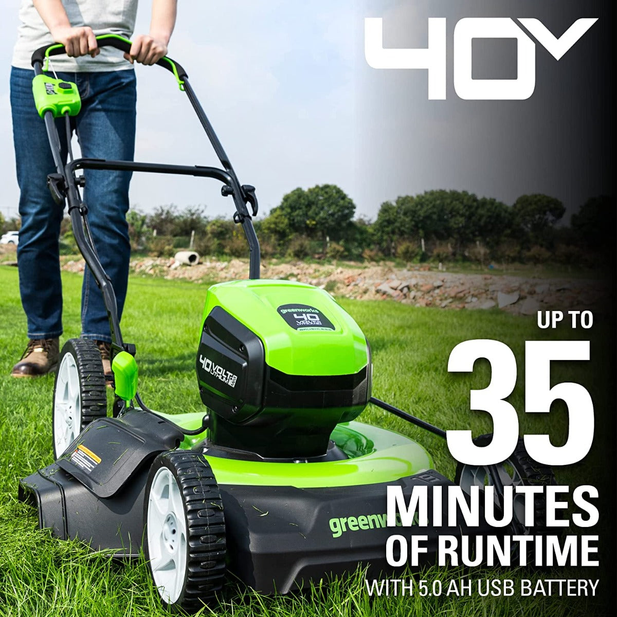 • Removable battery powers over 75 Greenworks 40-Volt tools.