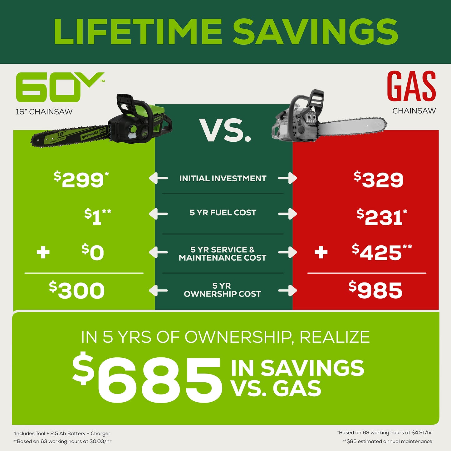 Compatible with the 60V 16" Cordless Battery 2.0kW Chainsaw w/ 2.5Ah Battery & Charger