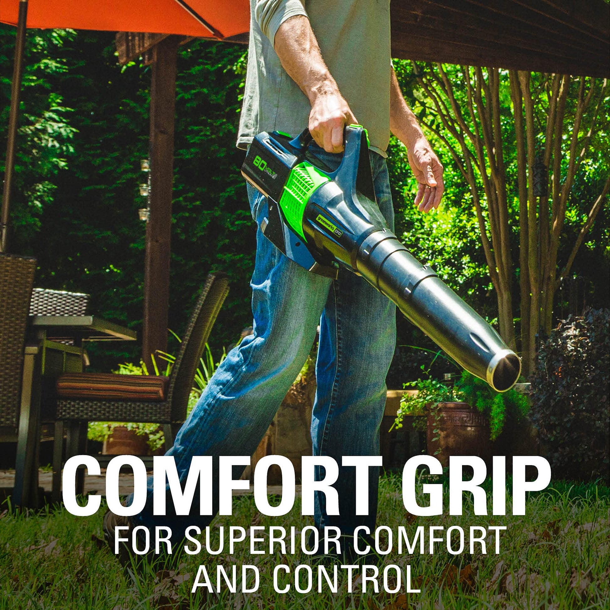This handheld blower is capable of high-velocity air speeds up to 145 MPH and airflow up to 580 CFM to easily handle the toughest blowing tasks like clearing wet & heavy leaves, grass, and other stubborn debris. The Greenworks lineup features 75+ high-performance Pro 80V tools, allowing you to ditch your gas tools for an innovative, eco-friendly alternative.